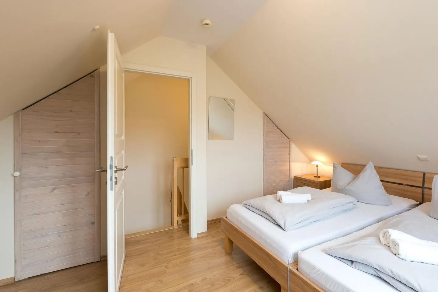 Im Obergeschoss befindet sich ein weiteres großes Schlafzimmer mit Doppelbett und TV.