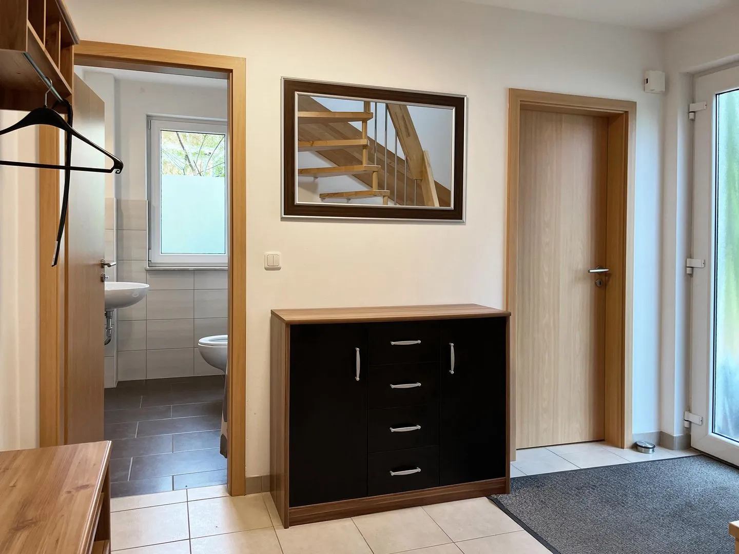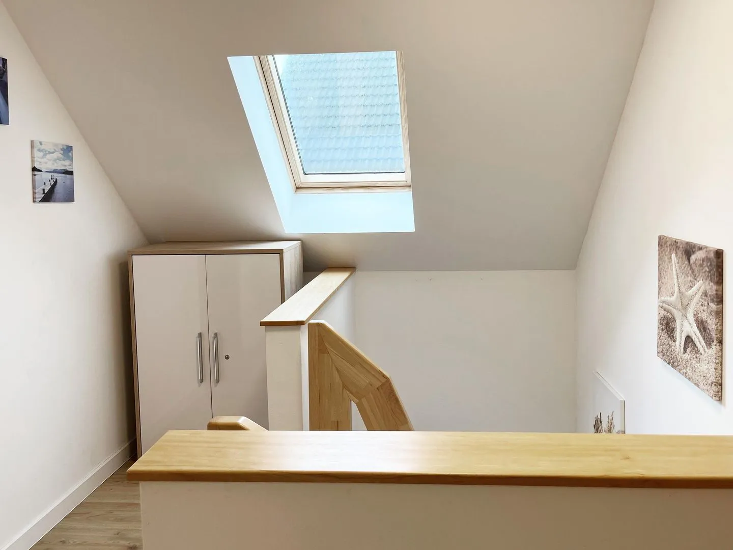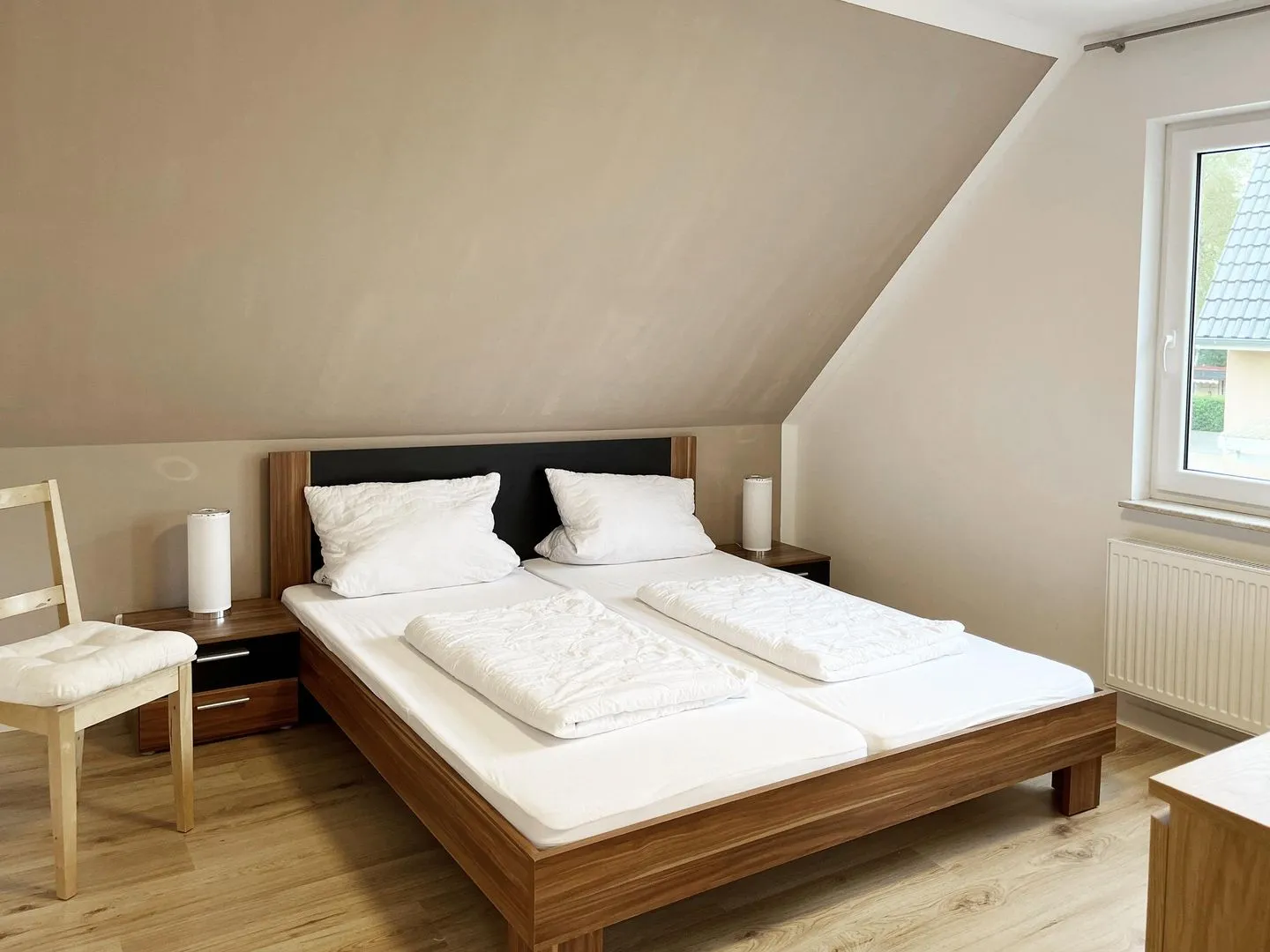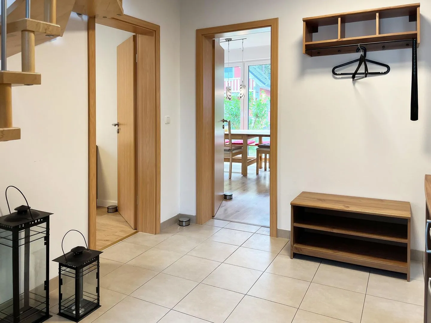 Im Erdgeschoss befindet sich der gemütliche Wohnraum mit Koch-/ Essbereich, ein zweites Bad mit Dusche, WC und Waschbecken und ein Schlafzimmer mit Doppelbett, Schrank und Kommode. Die drei Schlafzimmer im Obergeschoss sind alle mit Doppelbett, Schrank und Kommode ausgestattet, darüber hinaus verfügt jedes Schlafzimmer über einen modernen LCD-Flachbildschirm. Das Hauptbad im Obergeschoss ist mit WC, Waschbecken, sowie Badewanne und Dusche ausgestattet. Der Außenbereich bietet eine große überdachte Terrasse mit Sitzmöbeln, Sonnenschirm und Grill.