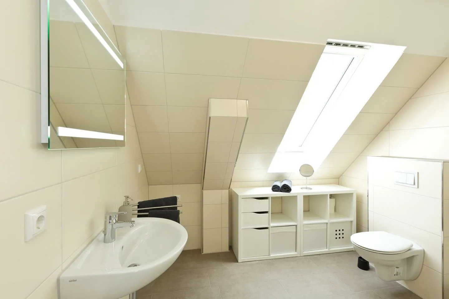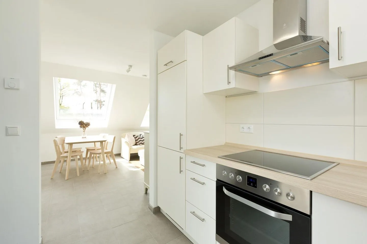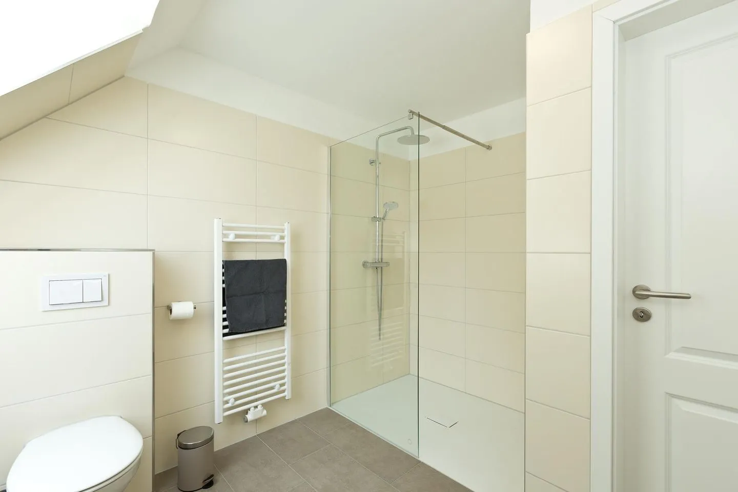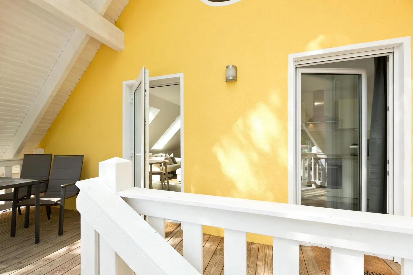 Die Ferienwohnung liegt im Obergeschoss. Geräumig und modern gestaltet. Mit großen Dachfenstern, die viel natürliches Licht hereinlassen. Die Wohnung verfügt über ein großzügigen Wohnbereich, einer voll ausgestatteten Küche, einem Bad mit ebenerdiger Dusche, einem Schlafzimmer mit einem Doppeltbett und einem weiteren Schlafzimmer mit zwei Einzelbetten. In dieser Ferienwohnung gibt es ausreichend Platz für bis zu 4 Personen.
