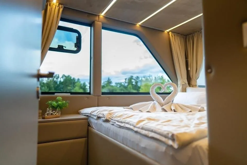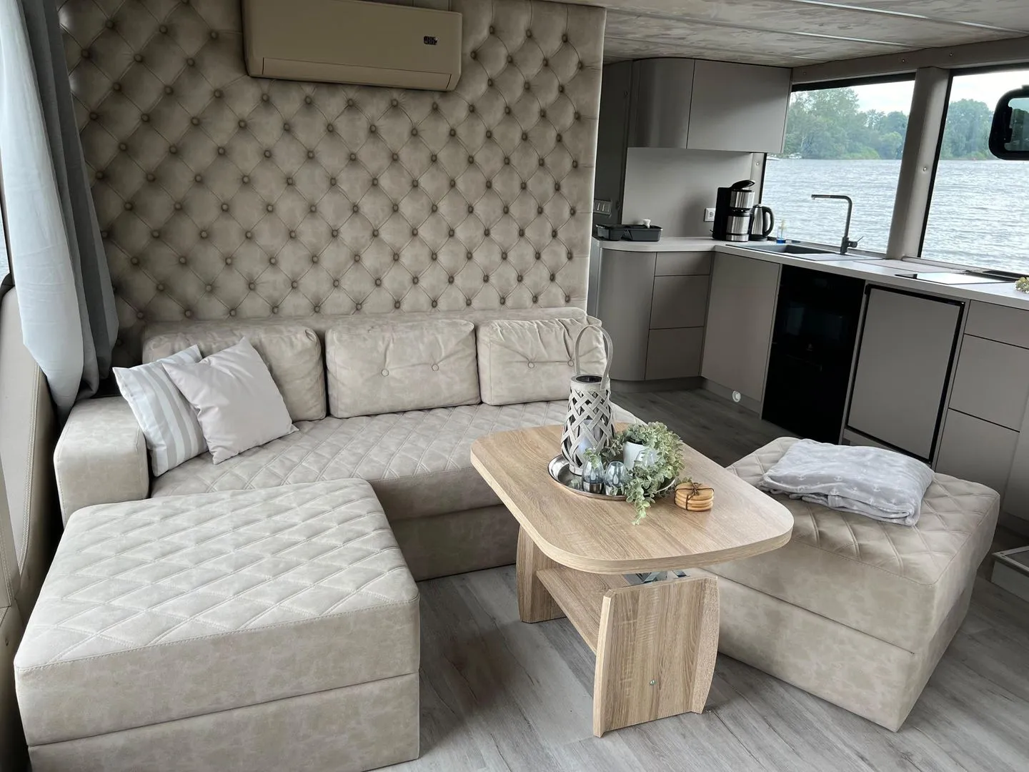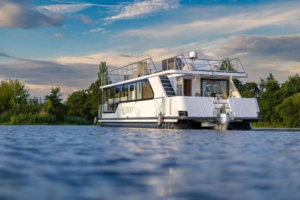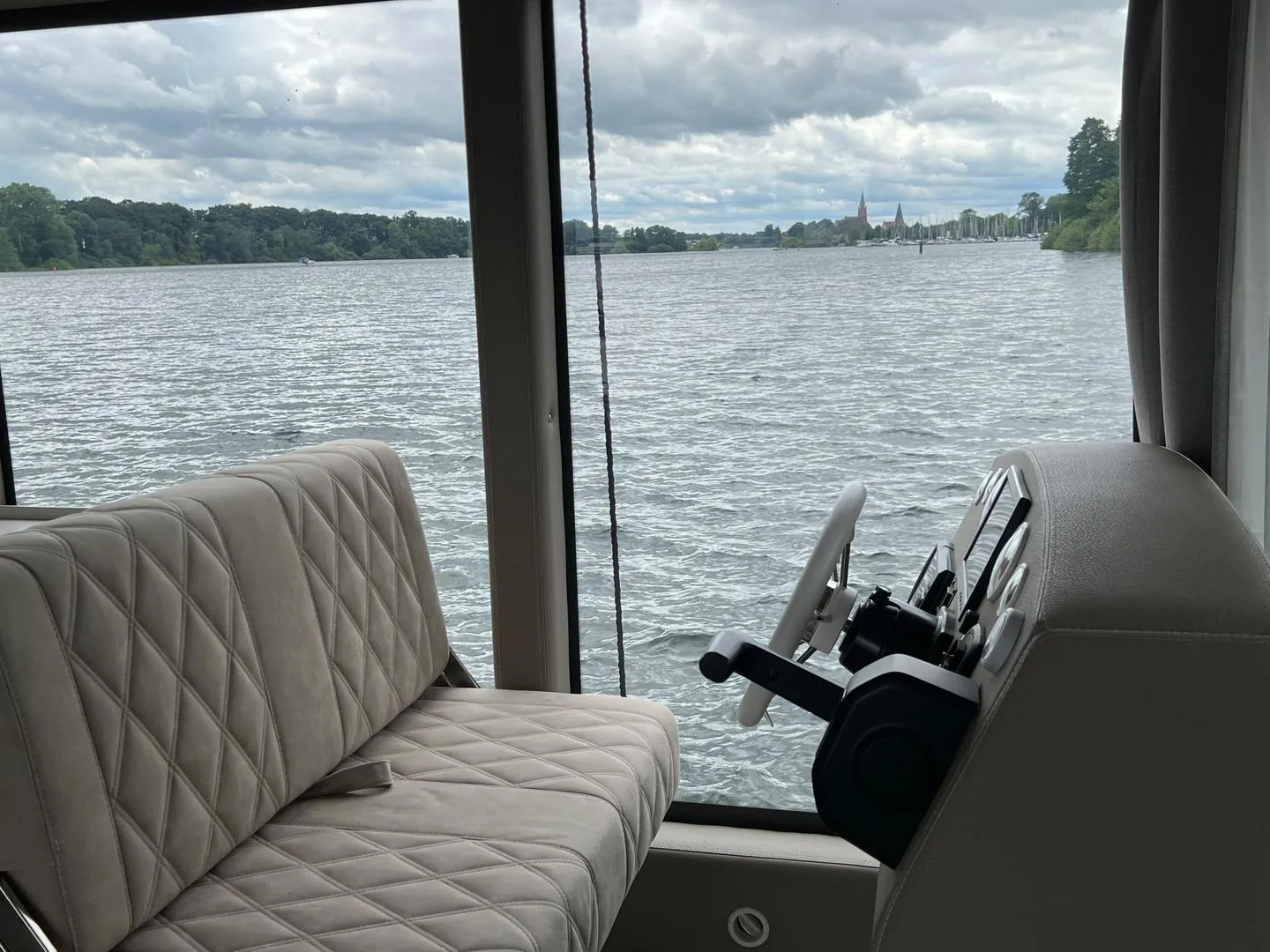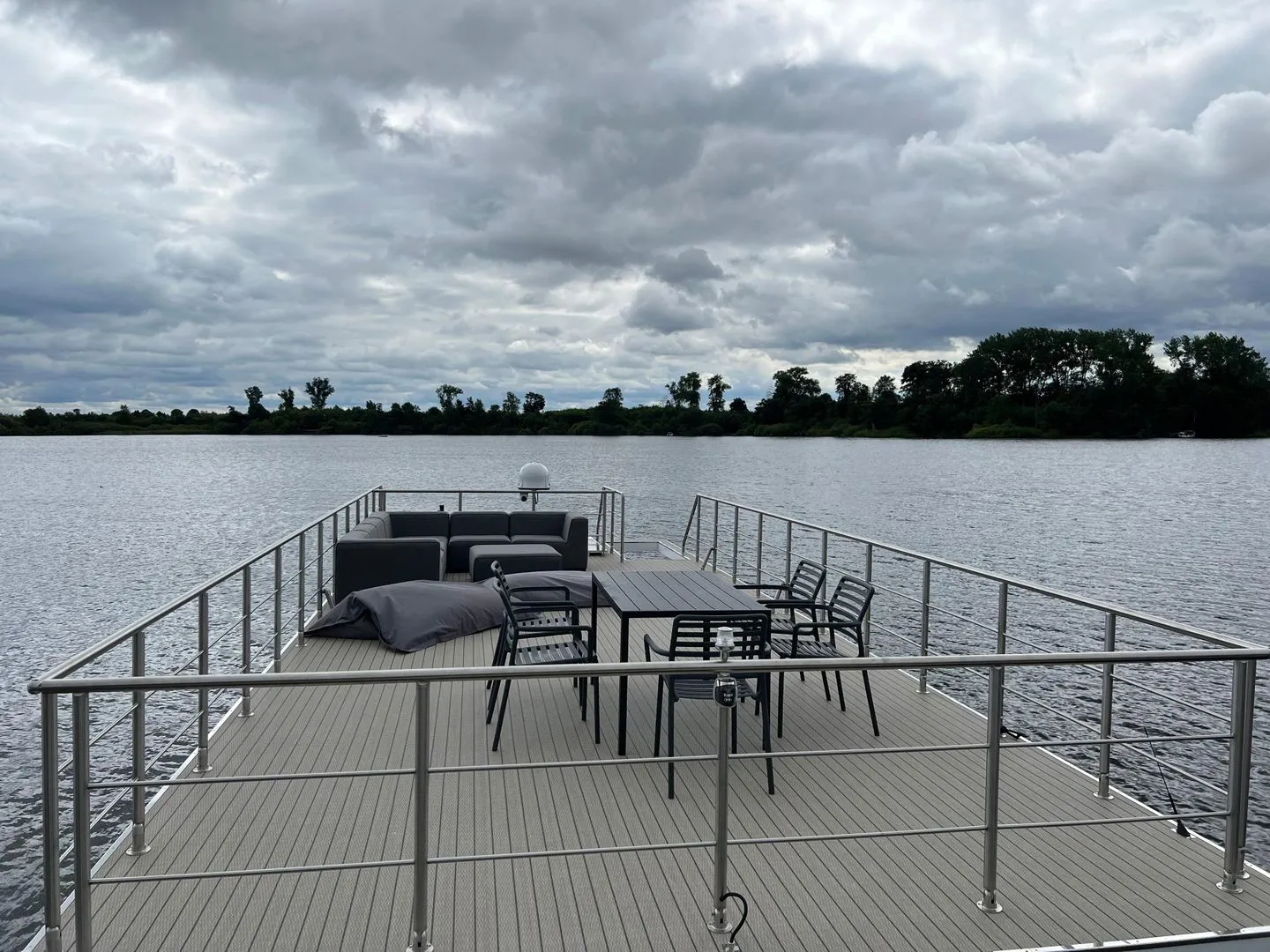 Erleben Sie einen unvergessliche Zeit auf unserem Luxboot an der Müritz. Unser stilvolles und modernes Luxboot bietet Platz für bis zu 5 Personen und ist perfekt ausgestattet für einen komfortablen Aufenthalt auf dem Wasser. Genießen Sie atemberaubende Ausblicke auf den Seen von der Hängeschaukel die sich im Außenbereich befindet. Eine weitere Schaukel befindet sich im Salon. Entspannen Sie sich auf dem Oberdeck, der mit Loungemöbel, Gasgrill und einer Outdoor-Heckküche ausgestattet ist. Des weiteren verfügt unser Luxboot über eine Klimaanlage, eine voll ausgestattete Küche, 2 Schlafräume mit 160 x 200 Betten, Fussbodenheizung im Bad sowie ein Handtuch-Heizkörper. Ob Sie Angeln, Schwimmen oder einfach die Ruhe der Natur genießen möchten, unser Luxboot ist der ideale Ausgangspunkt für Ihre Abenteuer an der Müritz.