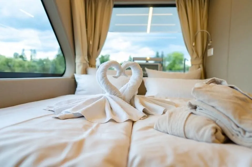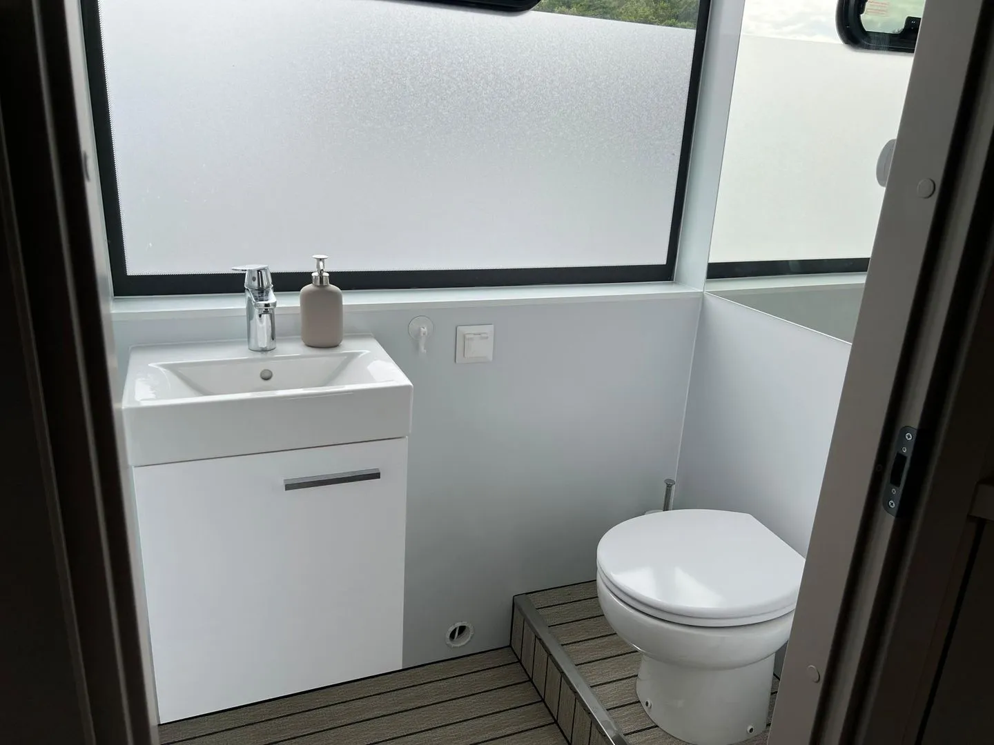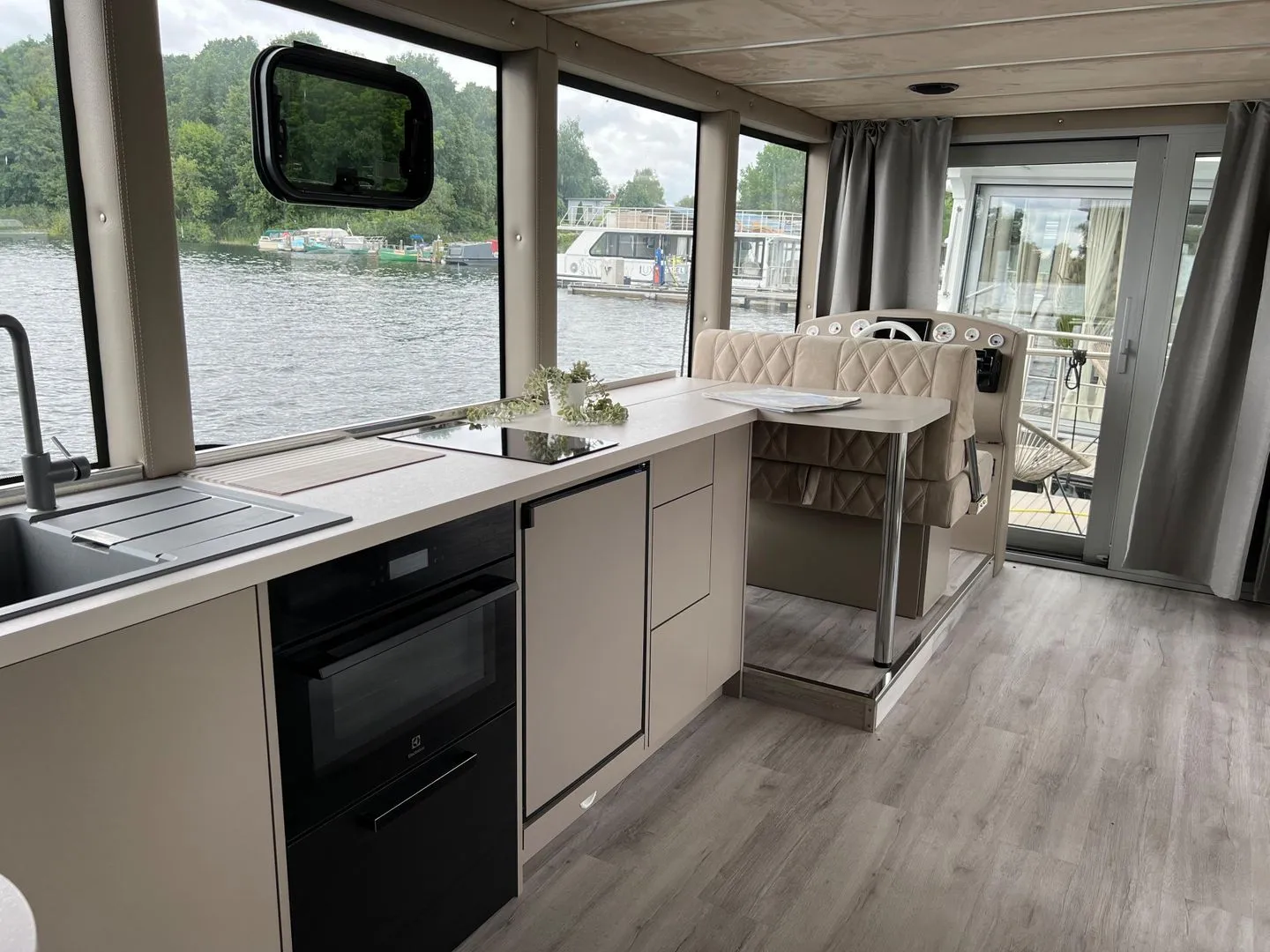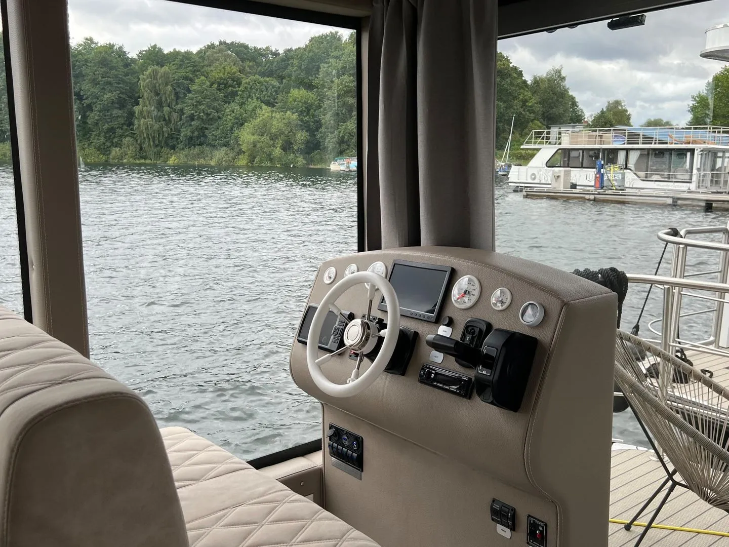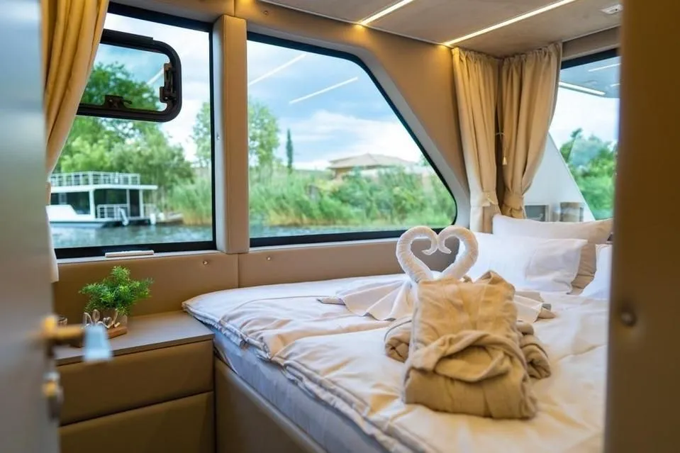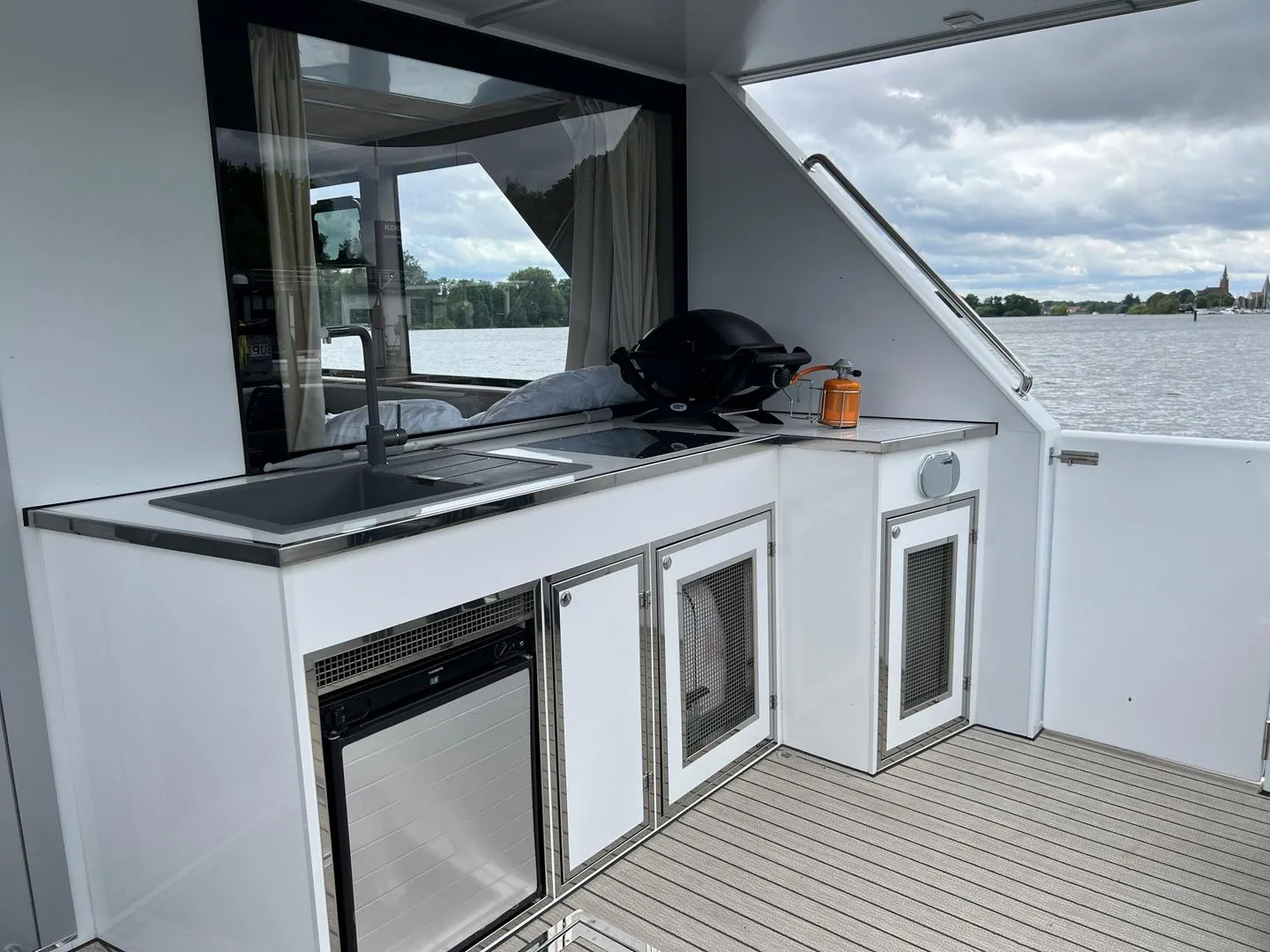 Erleben Sie einen unvergessliche Zeit auf unserem Luxboot an der Müritz. Unser stilvolles und modernes Luxboot bietet Platz für bis zu 5 Personen und ist perfekt ausgestattet für einen komfortablen Aufenthalt auf dem Wasser. Genießen Sie atemberaubende Ausblicke auf den Seen von der Hängeschaukel die sich im Außenbereich befindet. Eine weitere Schaukel befindet sich im Salon. Entspannen Sie sich auf dem Oberdeck, der mit Loungemöbel, Gasgrill und einer Outdoor-Heckküche ausgestattet ist. Des weiteren verfügt unser Luxboot über eine Klimaanlage, eine voll ausgestattete Küche, 2 Schlafräume mit 160 x 200 Betten, Fussbodenheizung im Bad sowie ein Handtuch-Heizkörper. Ob Sie Angeln, Schwimmen oder einfach die Ruhe der Natur genießen möchten, unser Luxboot ist der ideale Ausgangspunkt für Ihre Abenteuer an der Müritz.