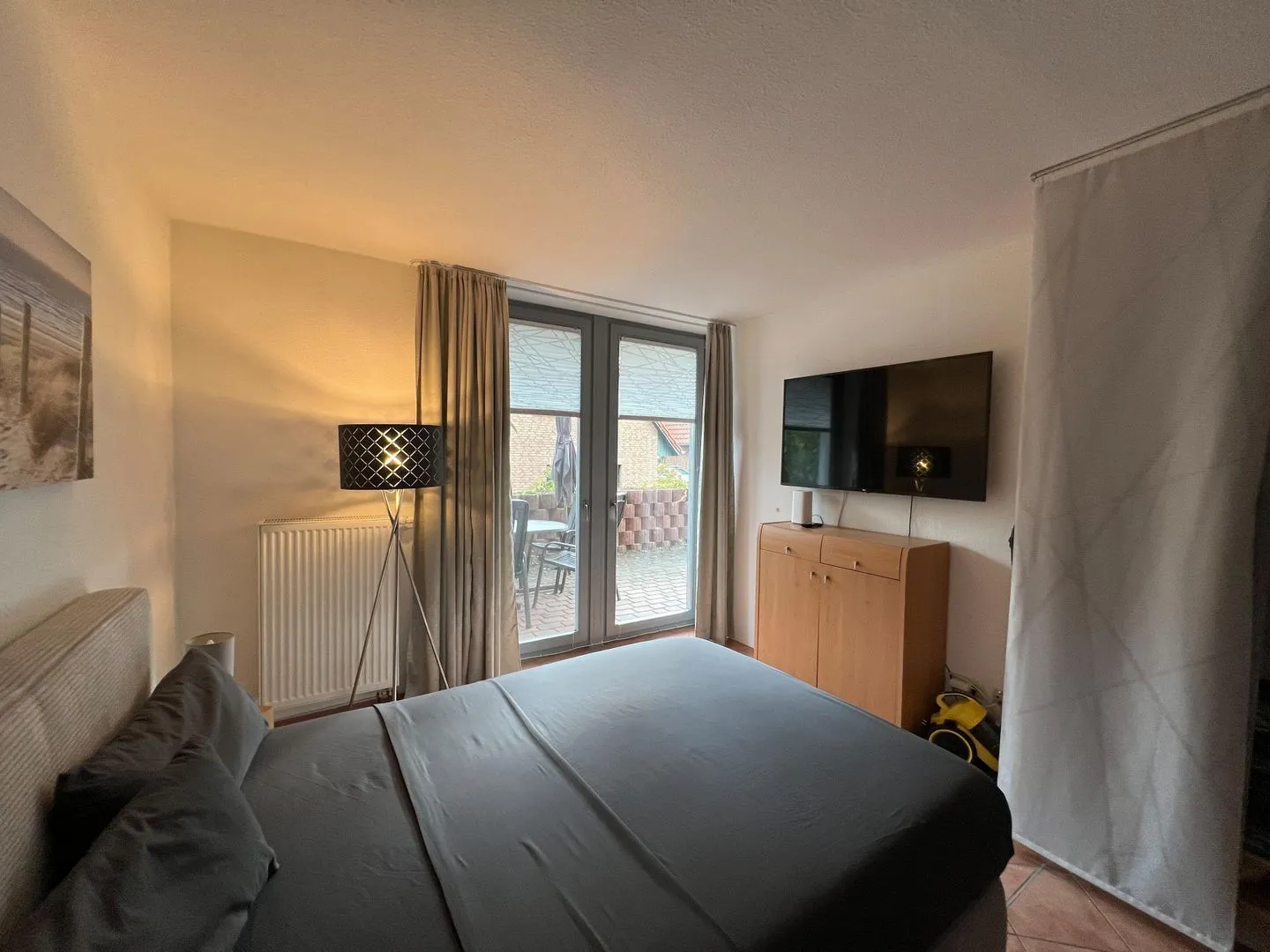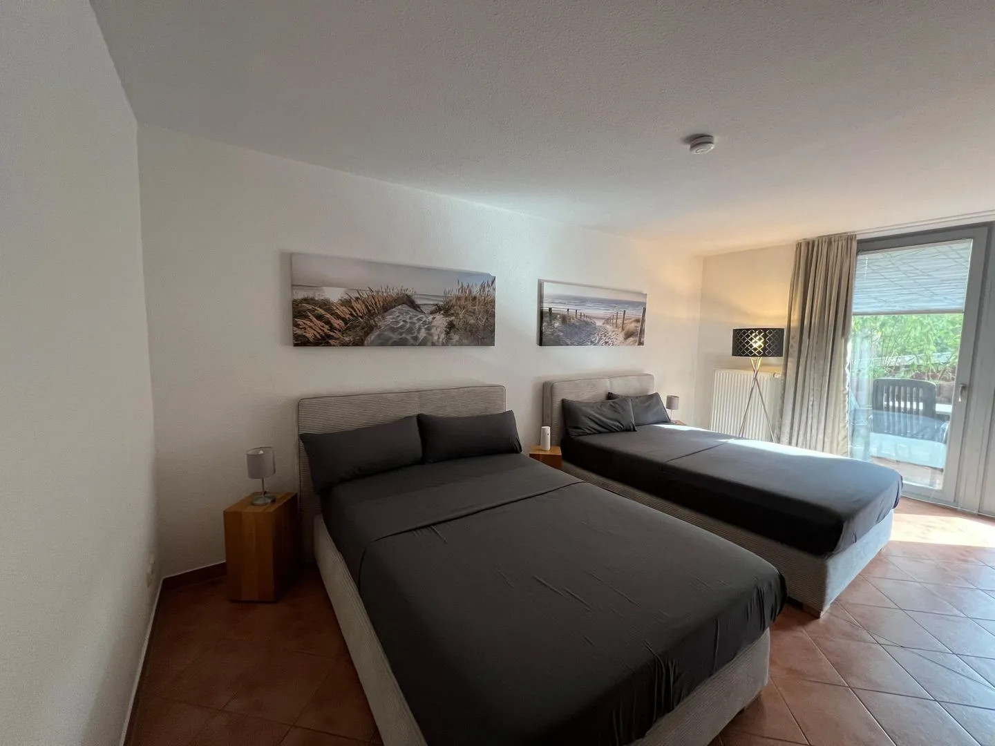 Das Erdgeschoss verfügt über ein großes Schlafzimmer mit zwei Doppelbetten, TV und ebenfalls Zugang zur Terrasse. Von der Küchenebene führt eine Treppe runter in den Wohnbereich mit Sofa , TV und Leseecke. Rollläden bieten die Möglichkeit den Raum nach Bedarf zu verdunkeln. Daran schließt sich noch das zweite Doppelbettschlafzimmer, das ebenfalls durch Rollläden abgedunkelt werden kann.